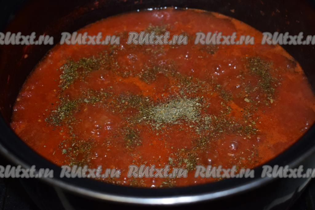 По прошествии времени, когда томатная масса станет однородной, добавляем к ней специи "Итальянские травы" (или "Прованские травы").