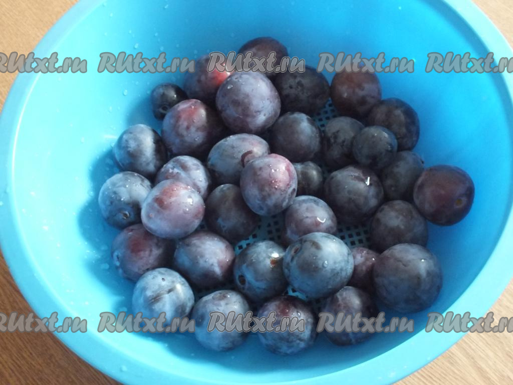 Сливы вымойте, выложите в дуршлаг, чтобы стекла лишняя жидкость. Затем, разделив сливы на две половинки, извлеките косточки.