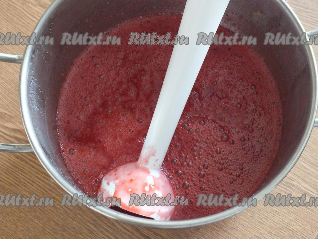 Снимите с огня кастрюлю. Горячее содержимое пробейте погружным блендером до однородного состояния.