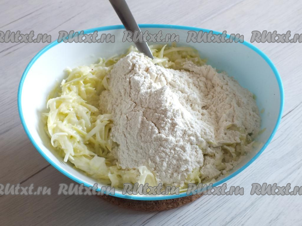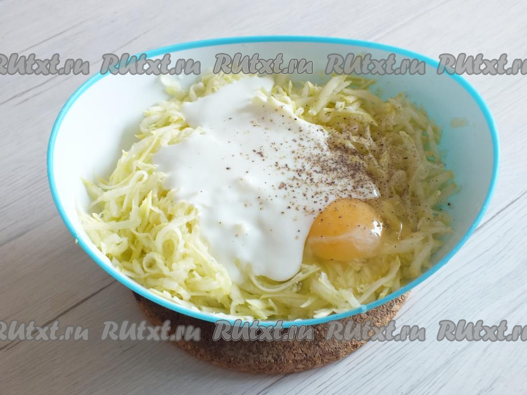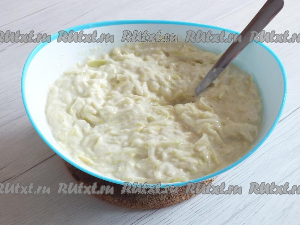 Хорошо перемешайте кабачковое тесто, чтобы не было мест с комочками муки. Тесто получится в меру густым.