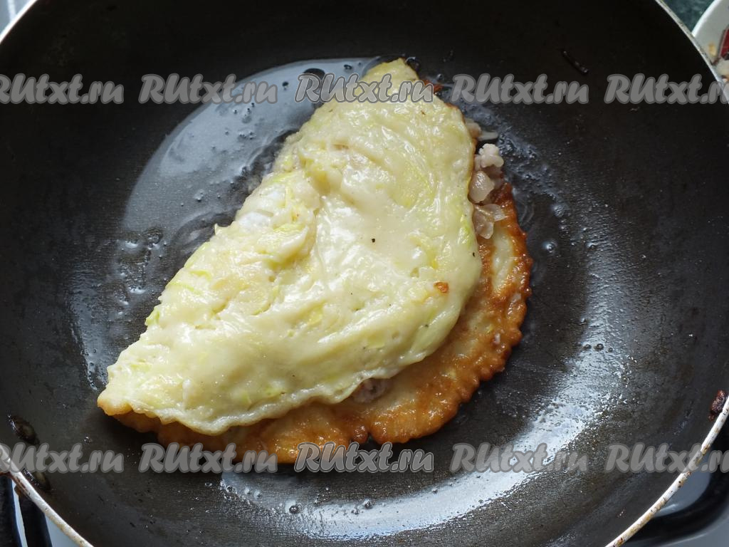 Обжаренный с двух сторон кабачковый чебурек снимите со сковороды.