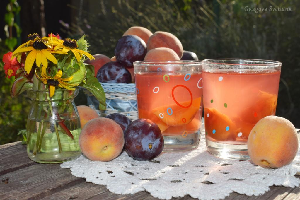 Компот, сваренный из персиков и слив, остывший до комнатной температуры, можно, по желанию, процедить и сразу пить. Но особенно вкусным он будет, если дать ему охладиться в холодильнике.