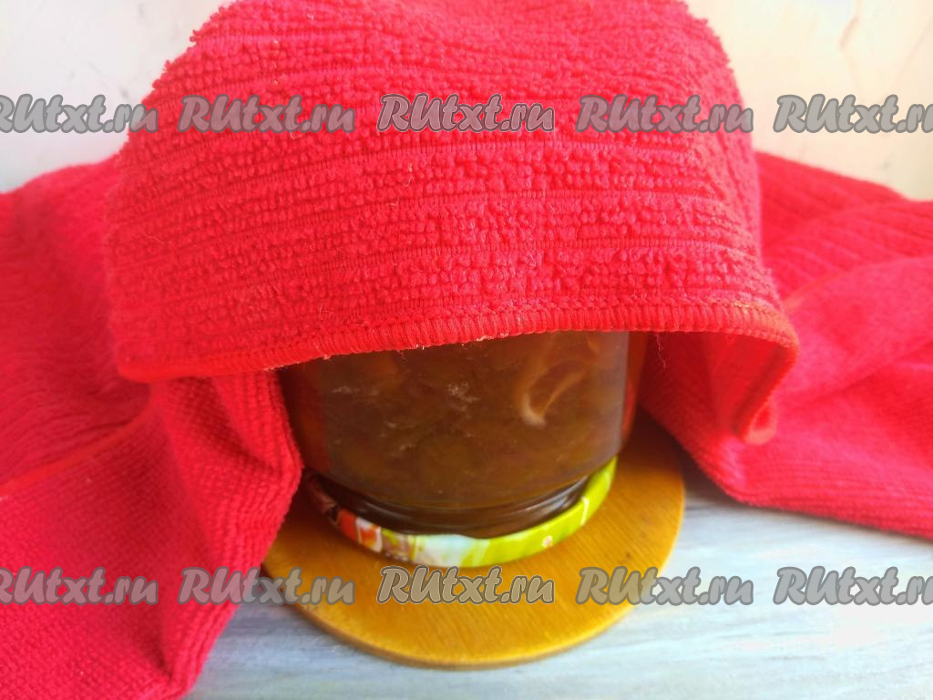 Банку поставить вверх дном. Укутать полотенцем и тёплым одеялом, оставить до остывания.