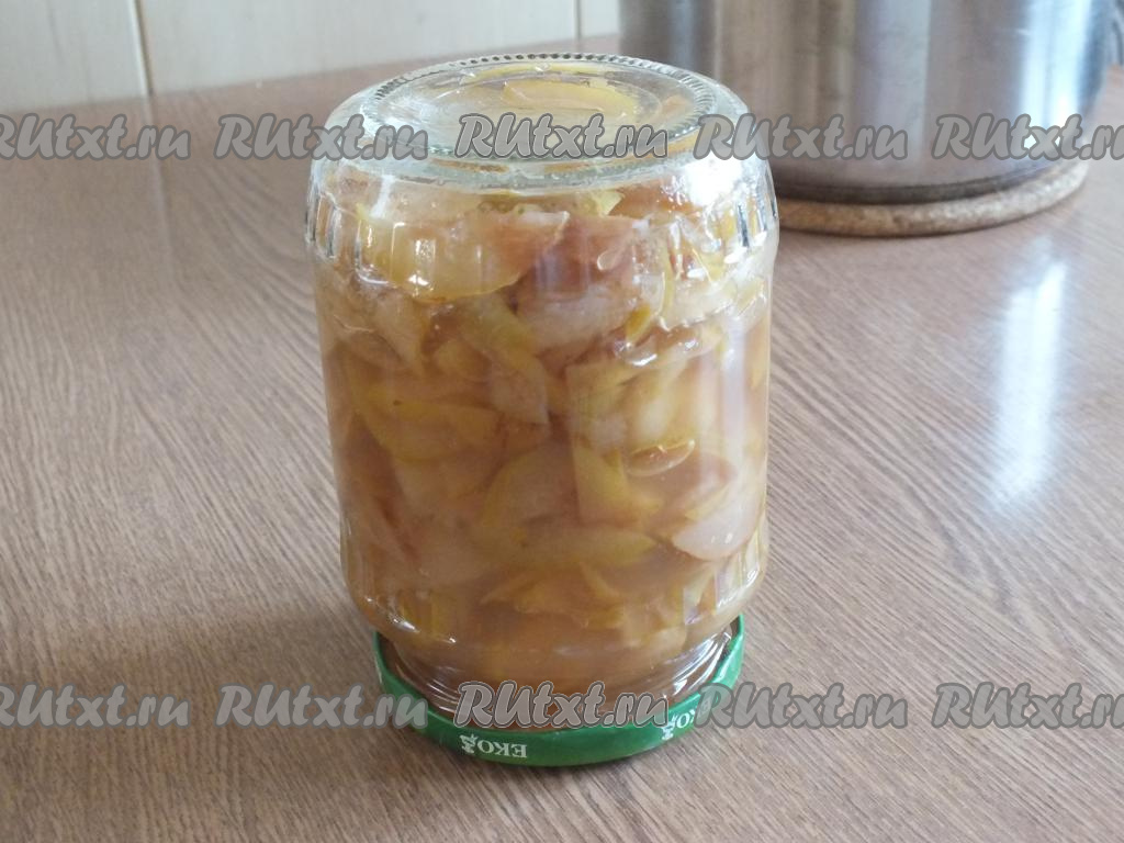 Через указанное время горячее варенье сразу же разлейте в сухие простерилизованные банки. Банки с вареньем из грушевых долек закройте прокипячёнными крышками, переверните и оставьте до полного охлаждения, а затем уберите на хранение в прохладное место.