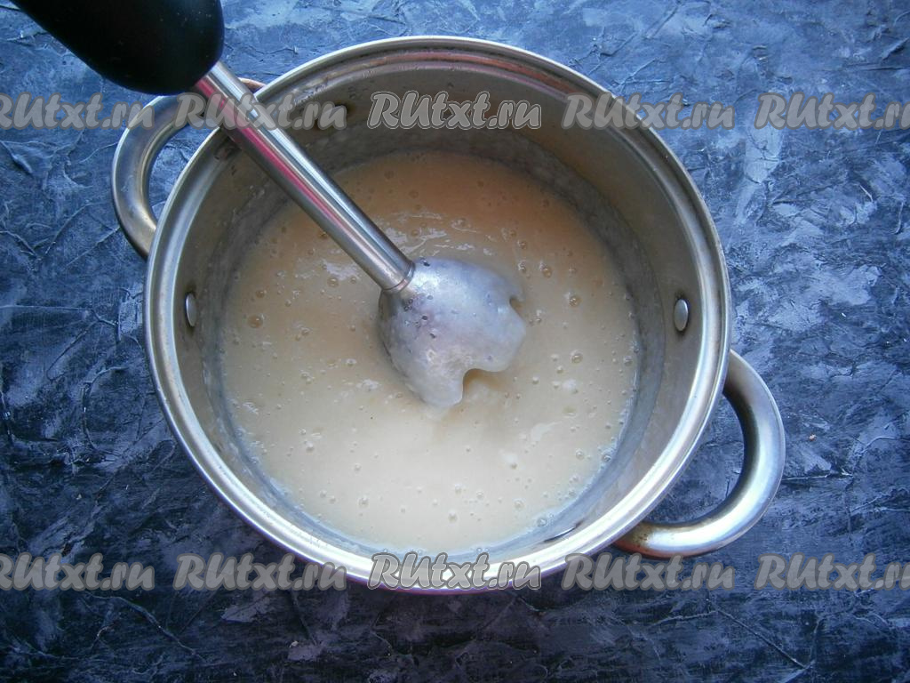 Далее сваренные груши пюрировать погружным блендером.