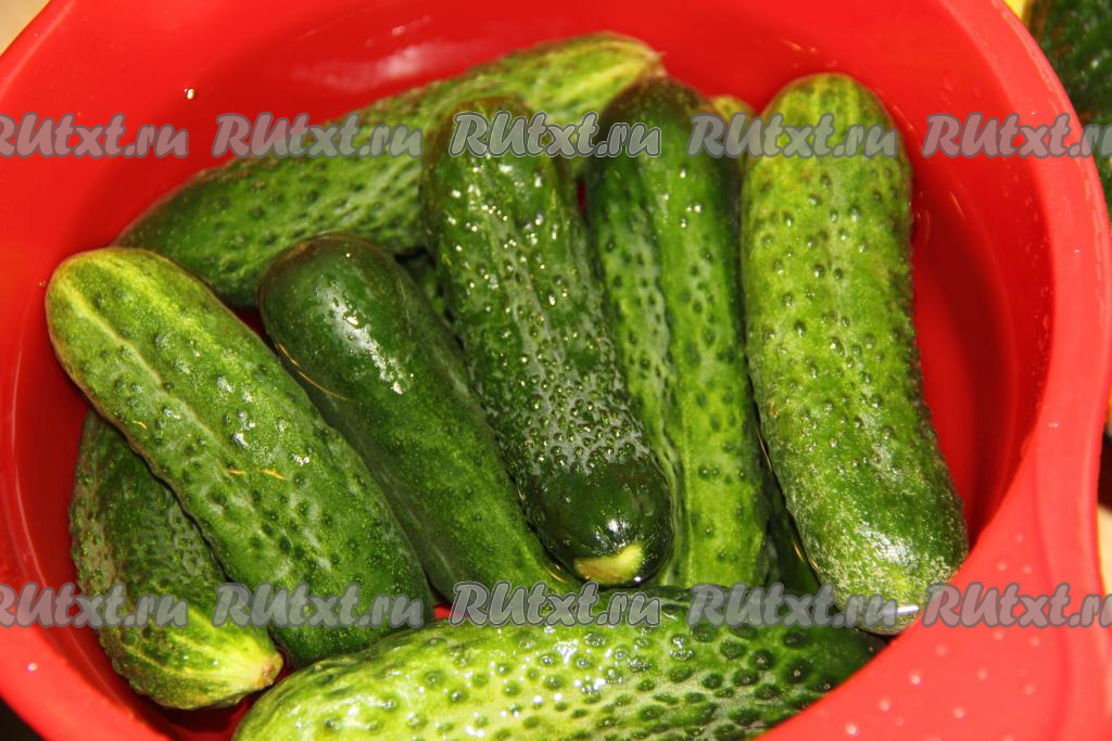 Свежие огурчики залить холодной водой и оставить на 3-5 часов (можно оставить в воде на ночь).