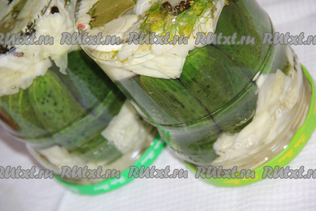 Затем плотно выложить огурчики (попки можно не обрезать).