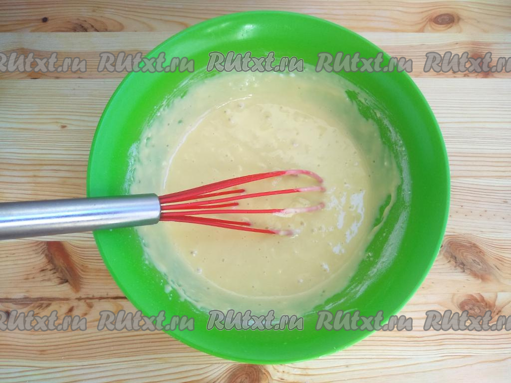 По консистенции тесто должно быть, как сгущённое молоко. Оставить его на 10 минут при комнатной температуре.