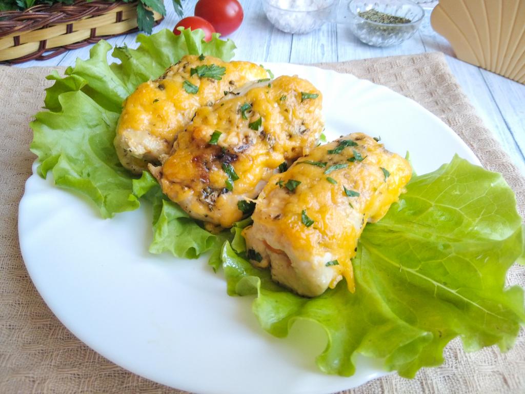 Нежные и сочные куриные рулетики с начинкой из сыра с морковью готовы.