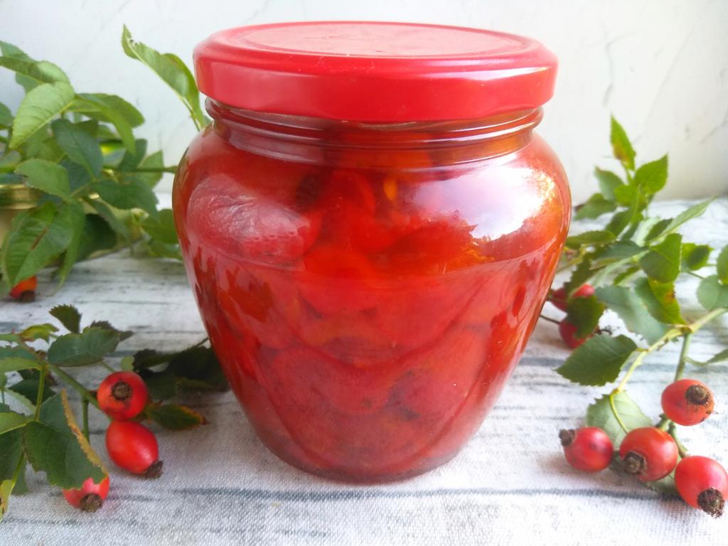 Для всех любителей необычных вкусов предлагаю рецепт удивительного варенья из шиповника на зиму. У этой ягоды уникальный витаминный состав и приятный кисло-сладкий вкус. Приготовить этот десерт непросто, внутри каждой ягоды находятся неприятные косточки с волосками, которые нужно аккуратно удалить. Но, могу вас заверить, полученный результат вас приятно удивит. Приготовьте небольшую баночку этого варенья, чтобы оценить затраченные усилия и качество десерта. При чистке ягод обязательно используйте резиновые перчатки. Из указанных в рецепте ингредиентов выходит одна баночка варенья объёмом 0,5 литра.