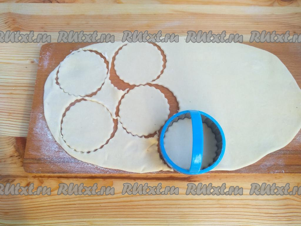 Затем вырезкой (или стаканом) вырезать из теста кружочки.