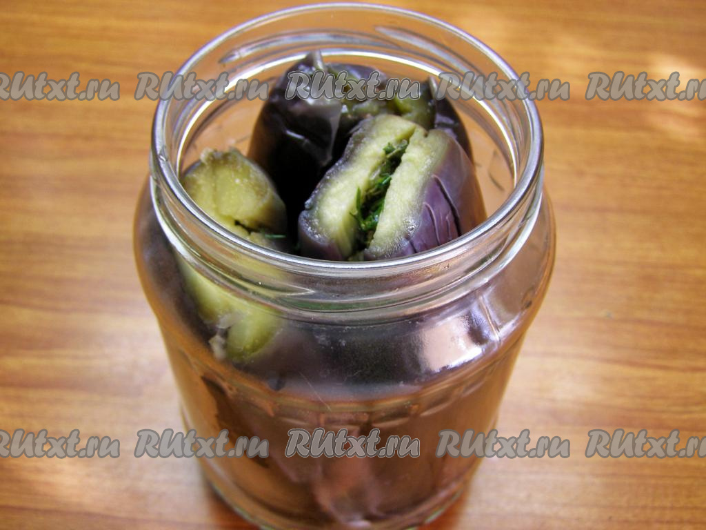 Баклажаны кладём в заранее простерилизованную банку (у меня банка ёмкостью 720 мл).