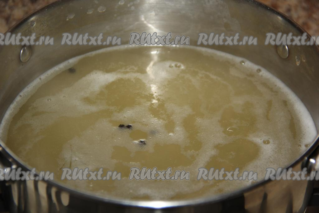 По истечении 3 суток слить соляной раствор в кастрюлю, поставить на огонь. Когда рассол закипит, дайте ему провариться пару минут.