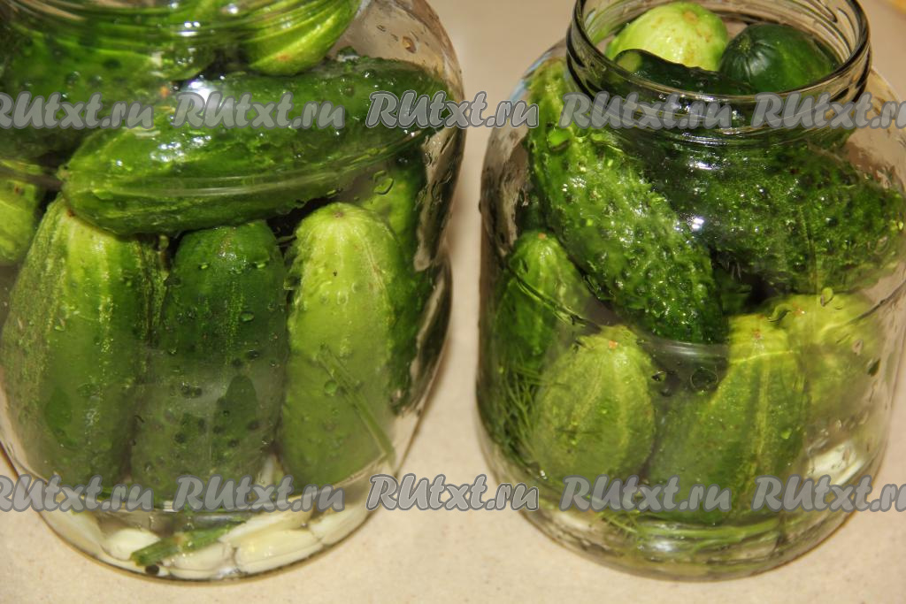Огурцы хорошо вымыть и плотно выложить в банки. Я сделала одну трёхлитровую банку и две баночки по 2 литра.