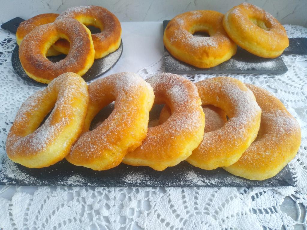 Пончики - кондитерские изделия из сладкого теста с отверстием по середине, их любят взрослые и дети во всём мире. Готовят пончики с различными начинками и без, посыпают сахарной пудрой или покрывают разноцветной помадкой. Предлагаю простой рецепт приготовления на сковороде пышных пончиков из теста, замешанного на кефире без добавления дрожжей. Для того чтобы изделия получились воздушными, соблюдайте пропорции муки и жидких компонентов. Выбирайте кефир жирностью 2,5% и муку высшего сорта. Все продукты перед приготовлением должны быть комнатной температуры.