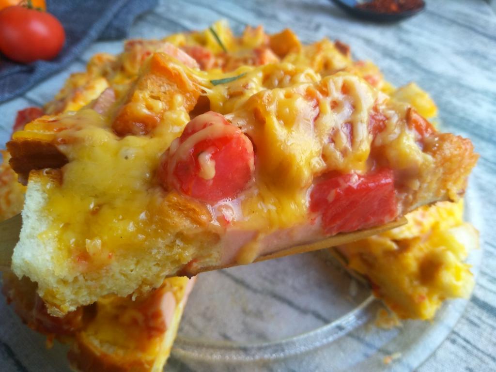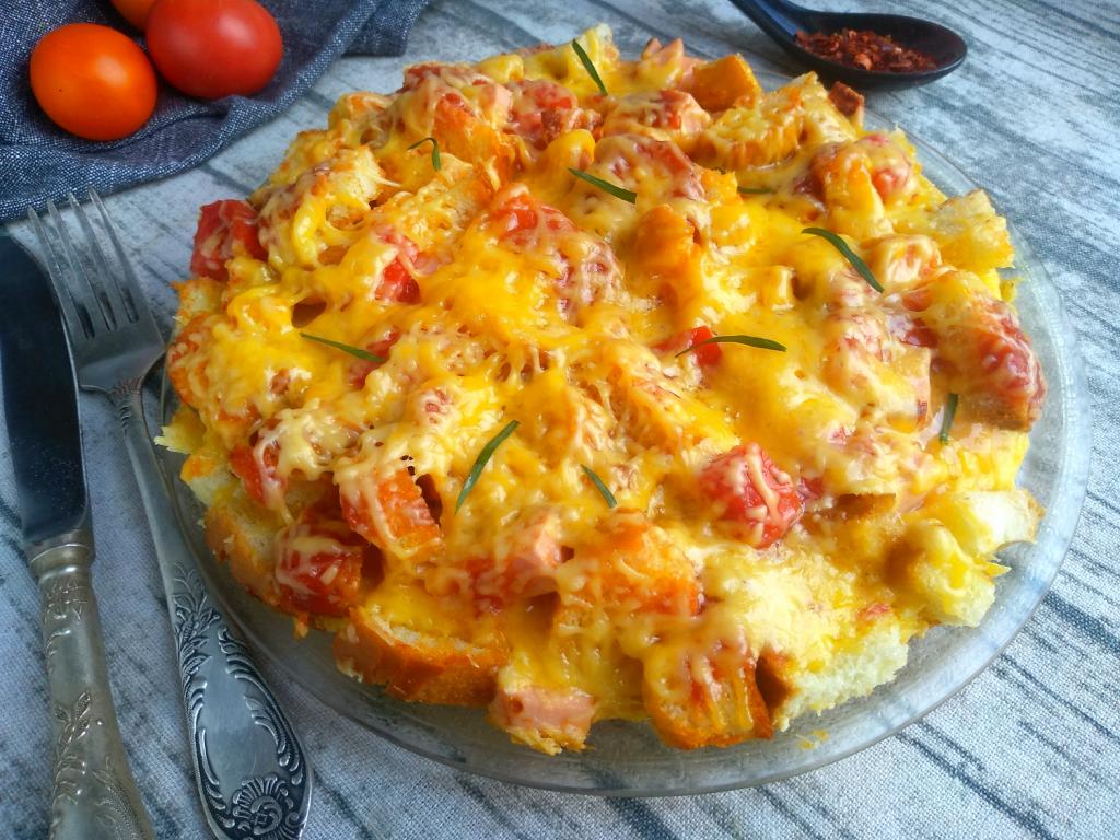 Ленивая пицца на батоне на сковороде