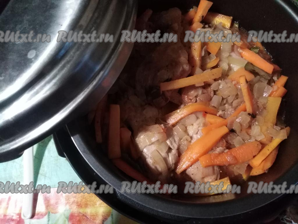 Готовим жаркое из курицы с картошкой в мультиварке, закрыв крышку, 40 минут при закрытом клапане, установив режим "Тушение".