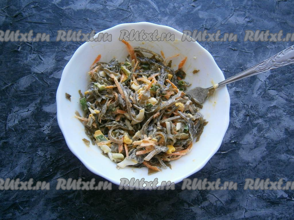 Предлагаю вашему вниманию рецепт салата из морской капусты с морковью и яйцами. Этот простой салатик готовится из небольшого набора продуктов, а получается очень вкусным и питательным. Для заправки салата вместо майонеза можете добавить домашний йогурт или сметану, но вкус, конечно, немного изменится.