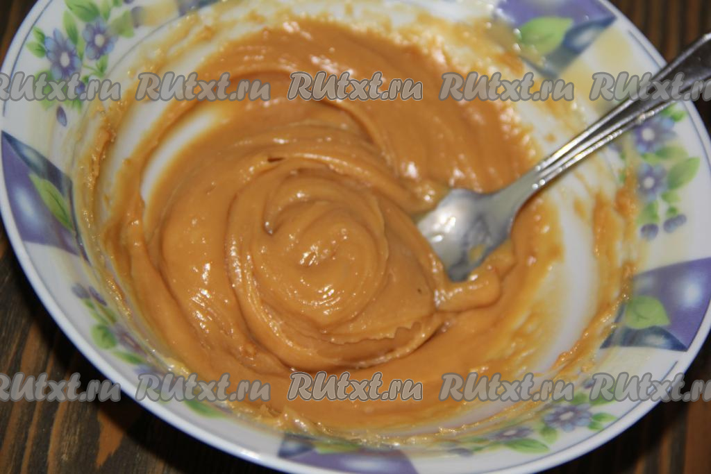 Ставим посуду со сгущёнкой в микроволновку и варим 1 минуту на средней мощности (350-400 Вт), затем достаём и перемешиваем.