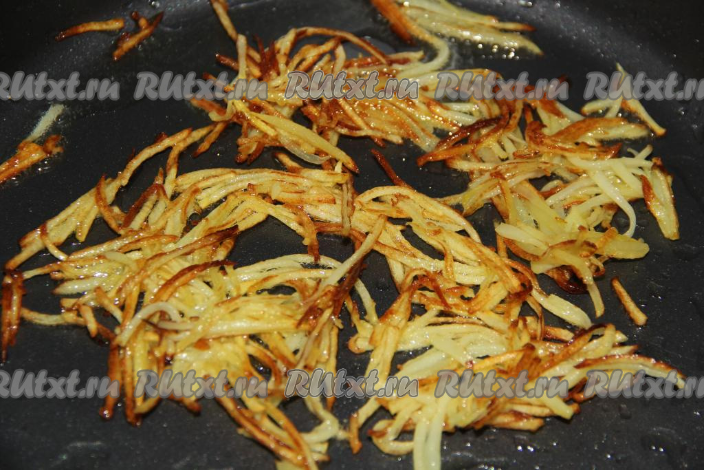 Обжарить картофель на среднем огне, периодически помешивая, до золотистого цвета.