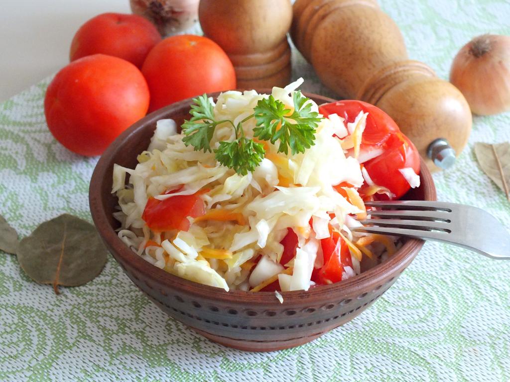 Если вы любите разносолы, то этот рецепт непременно вам понравится. Сочная, хрустящая капустка с квашеными помидорами станут отличным дополнением ко многим блюдам. Берите рецепт на заметку!