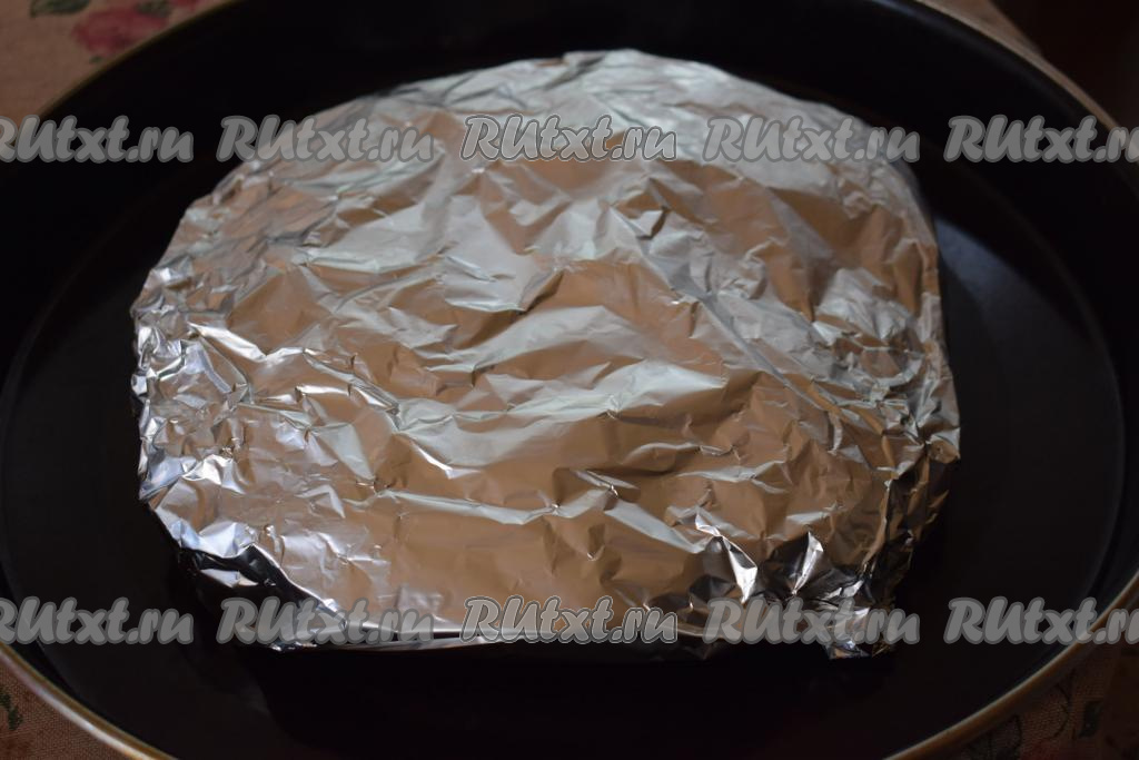 Формируем конверт из фольги так, чтобы курица полностью оказалась внутри (была завёрнута в фольгу со всех сторон).