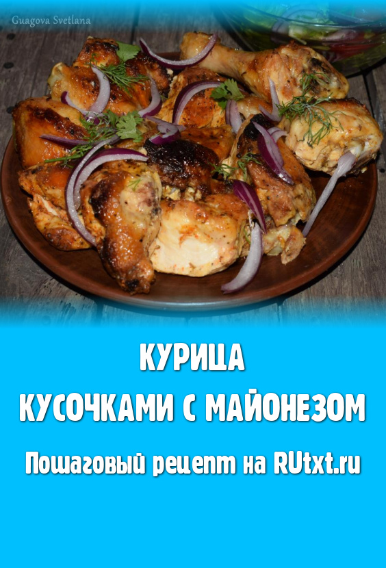 Хочу поделиться отличным рецептом приготовления сочной курицы с румяной корочкой в духовке. Курочка нарезается кусочками, а затем маринуется в майонезе и большом количестве различных пряных специй и трав, что делает мясо очень ароматным и придаёт пикантность. Это блюдо можно приготовить на обед или ужин, дополнив любым гарниром на ваш выбор. Попробуйте, мясо получается нежным, сочным и очень вкусным!