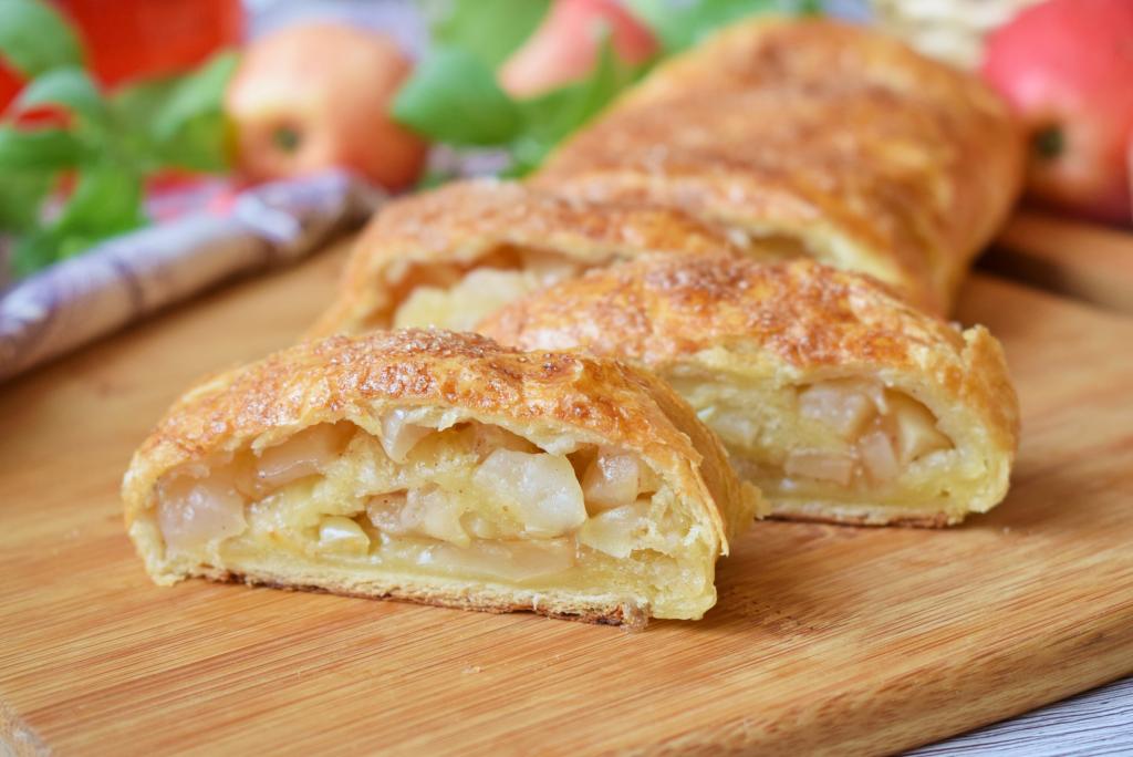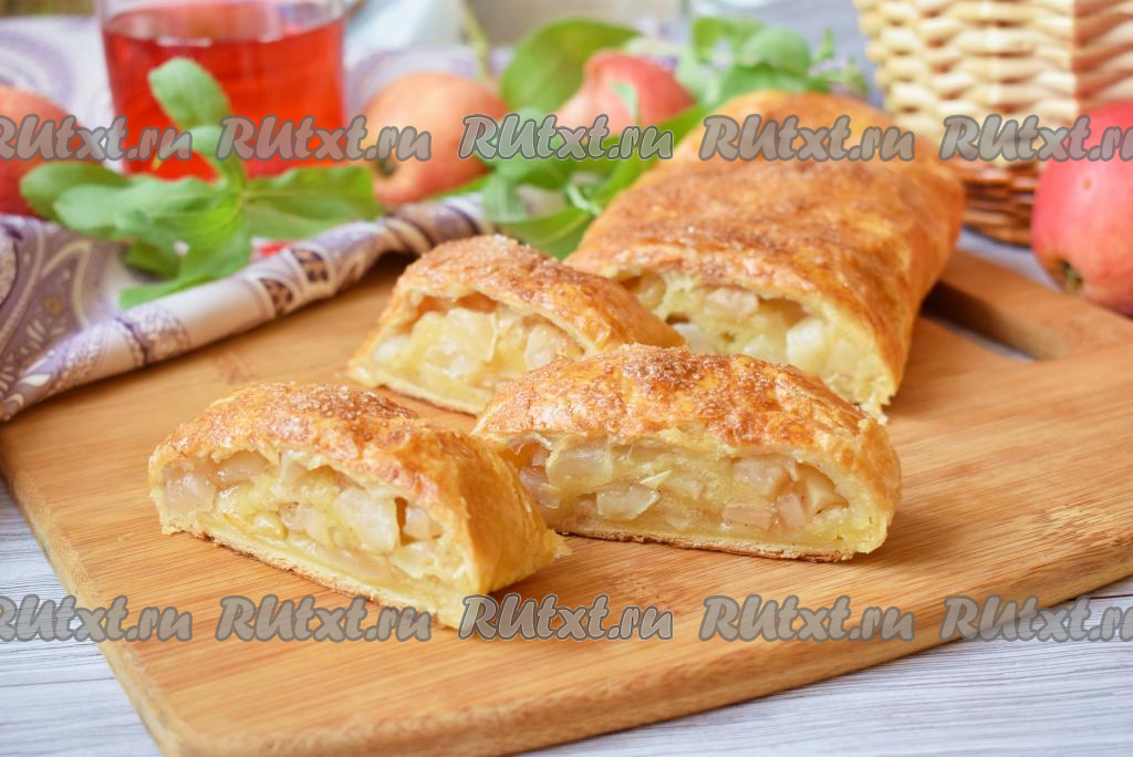Яблочных пирогов много не бывает! В яблочный сезон на нашем столе часто появляются различные блюда с яблоками. Вот одним из таких рецептов я и хочу с вами поделиться. Рулет из слоёного теста с яблоками готовится достаточно просто, а получается ароматным, очень вкусным, с аппетитно похрустывающей корочкой. С этой выпечкой справится даже начинающий кулинар, попробуйте!