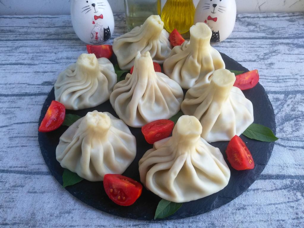 Наивкуснейшие, аппетитные хинкали, приготовленные на пару, достать из пароварки и подать горячими. Хинкали берут руками за ножку из теста, аккуратно откусывают край и выпивают мясной сок. Ножку не едят.