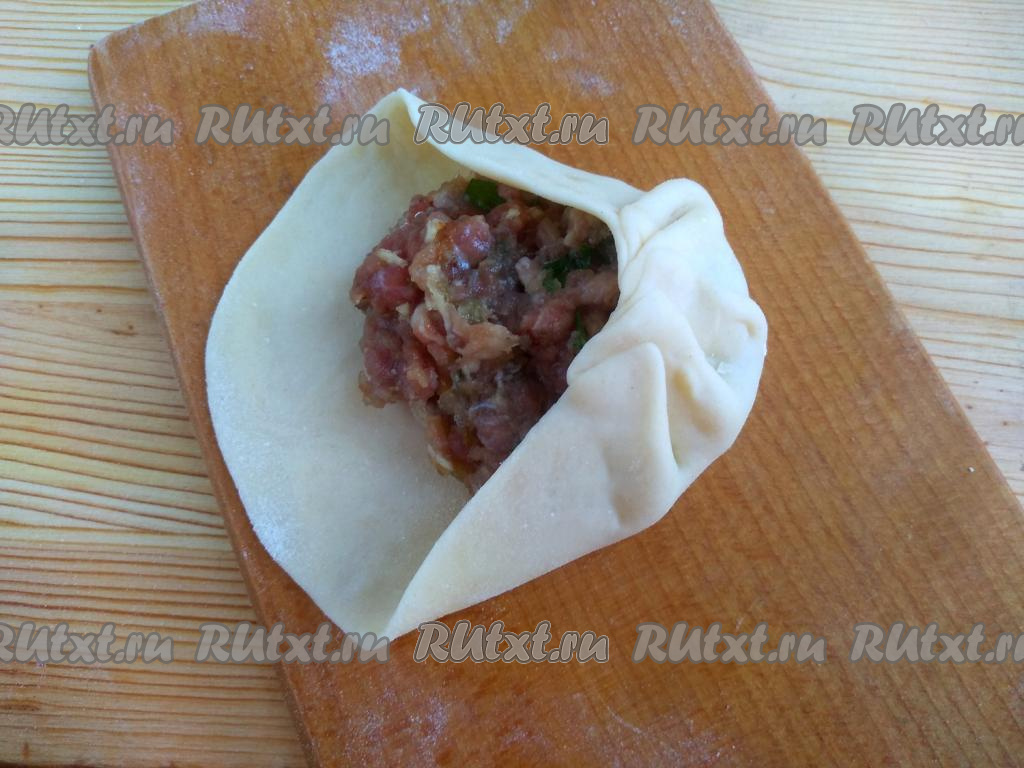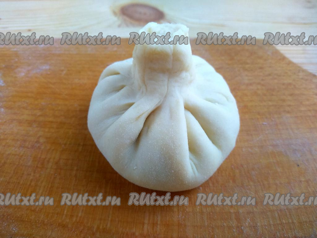Сформировать ножку. Ножка должна быть очень тщательно слеплена, чтобы при варке сок оставался внутри хинкали. Аналогично слепить остальные хинкали.