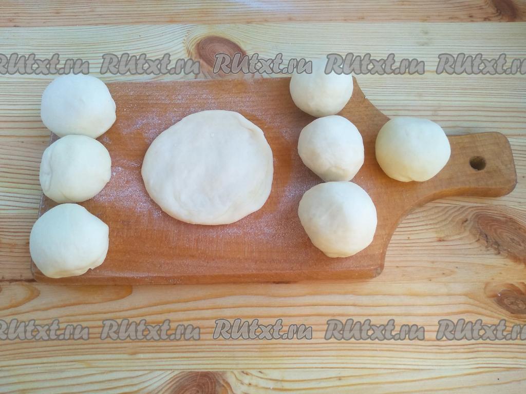 Тесто разделить на 8 частей. Из каждой части теста руками сформировать небольшую лепёшку.