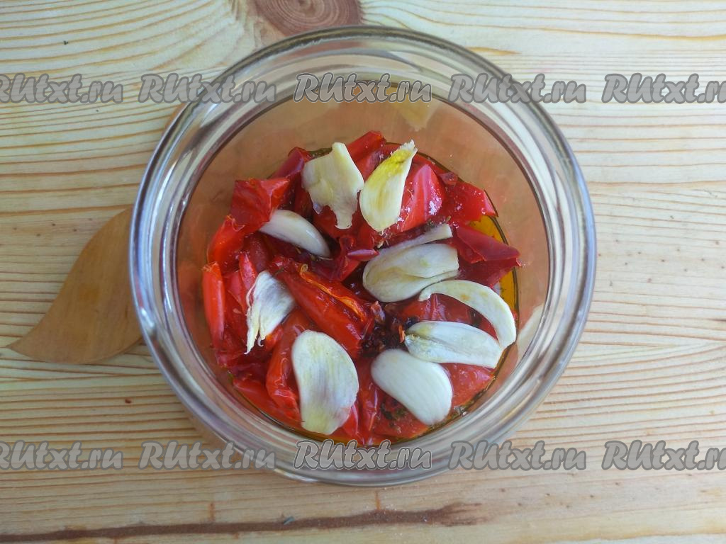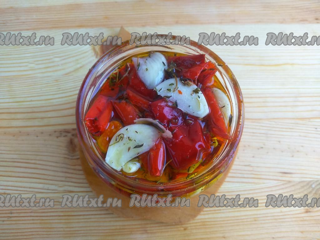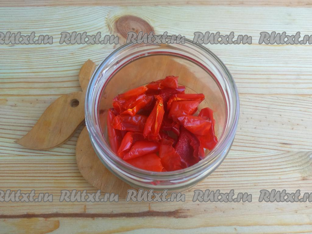 Вяленые перцы выкладывать в банку плотно, овощи должны быть полностью покрыты маслом.