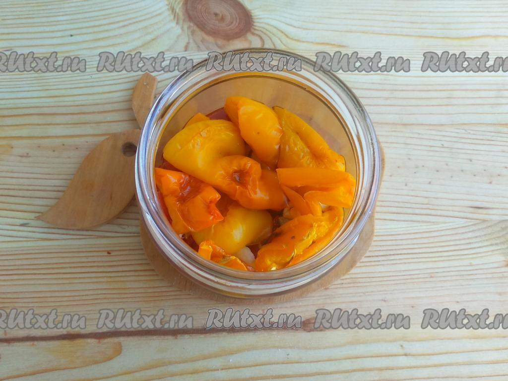Заготовку закрыть герметичной крышкой и отправить на хранение на зиму в сухое тёмное место. Болгарский перец, вяленый в духовке по этому рецепту, может храниться в течение года при температуре 20-25 градусов.