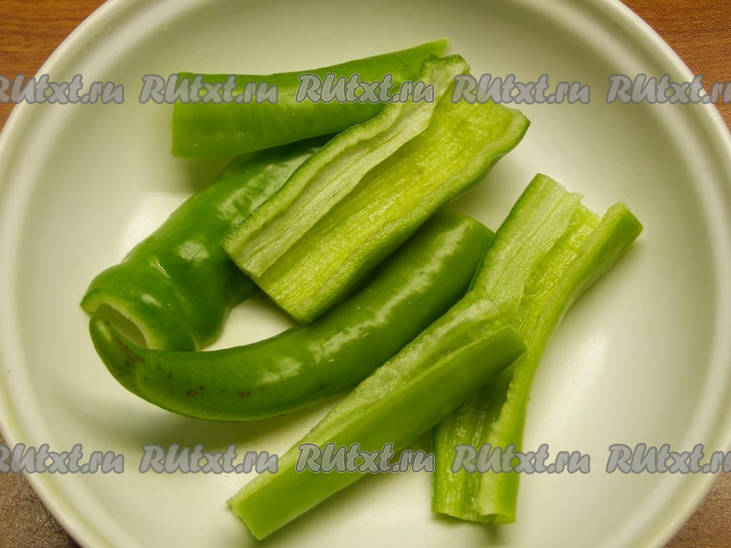 Сначала подготовим овощи. Болгарский перец моем, разрезаем пополам, удаляем семенную коробочку с семенами, споласкиваем водой.