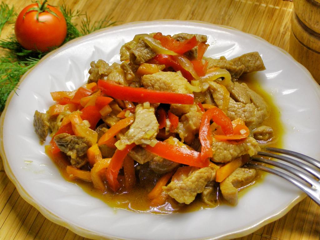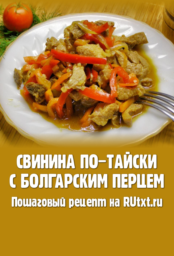 Любители пикантных мясных блюд, наверняка, оценят рецепт свинины по-тайски с болгарским перцем. Перед жаркой мясо маринуется в смеси соевого соуса, сока лимона, мёда и чеснока. В итоге получается очень аппетитная, ароматная, нежнейшая свинина с лёгким кисло-сладким привкусом. Подать это блюдо можно, дополнив салатом из свежих овощей или гарниром.