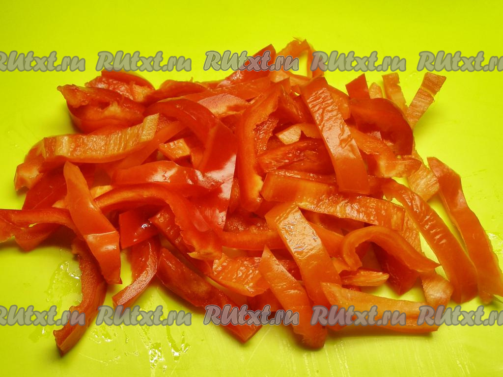 Болгарский перец очищаем от семян и нарезаем полосочками.