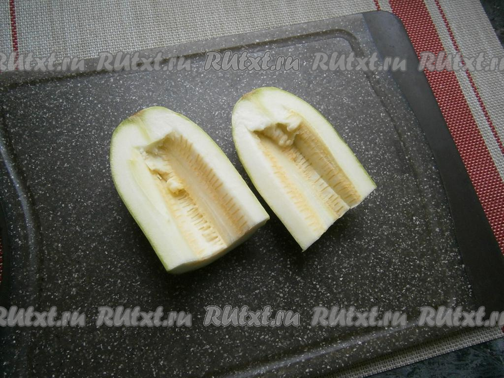 Кабачок очистить от кожуры, затем удалить из него серединку с семенами.