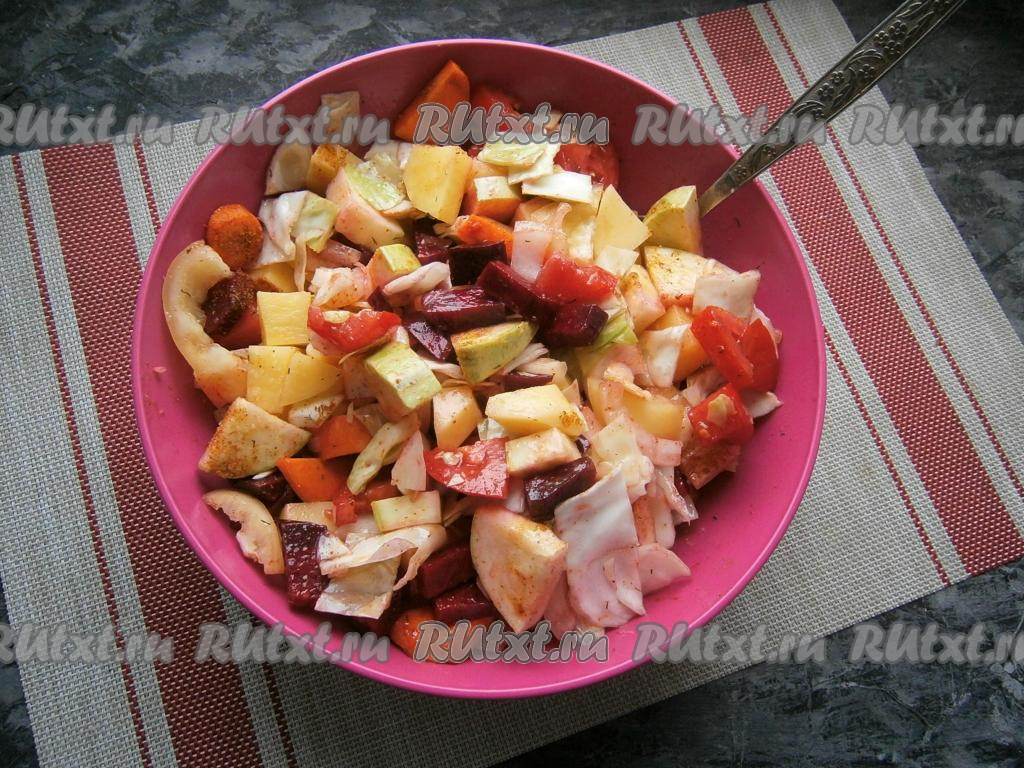 Все овощи перемешать.