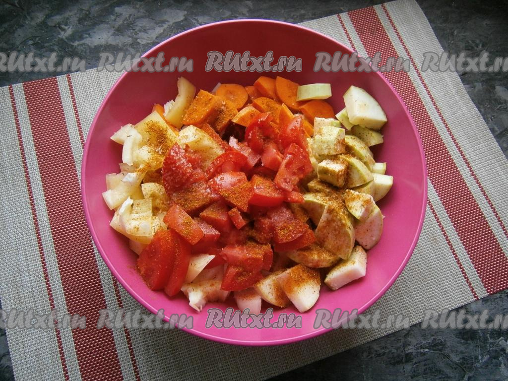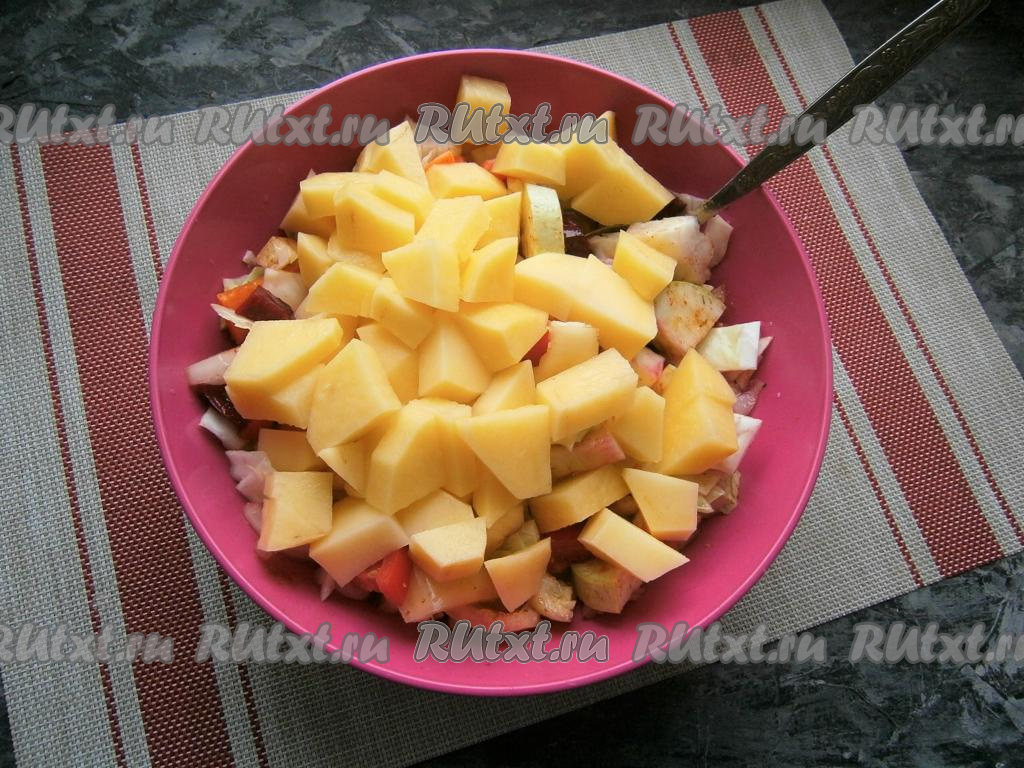Я ещё к овощам добавила картофель, нарезанный крупными кубиками.