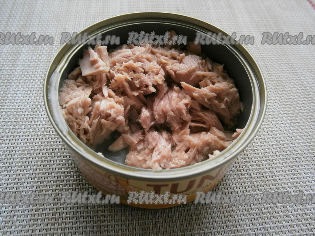 Морковь вымыть и, не очищая от кожуры, выложить в воду и отварить в течение 20-25 минут с начала кипения воды. Яйцо тоже отварить (на это понадобится минут 10 с начала кипения воды). Отваренные яйцо и морковку остудить и очистить. Открыть баночку с консервированным тунцом, масло слить. Для салата понадобится половина баночки.