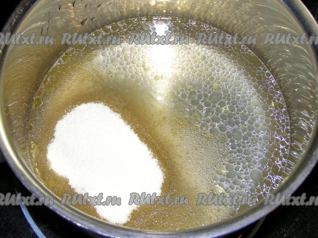 Сотейник с разбухшим желатином ставим на средний огонь и нагреваем, постоянно перемешивая, пока желатин не растворится. Доводить до кипения нельзя!