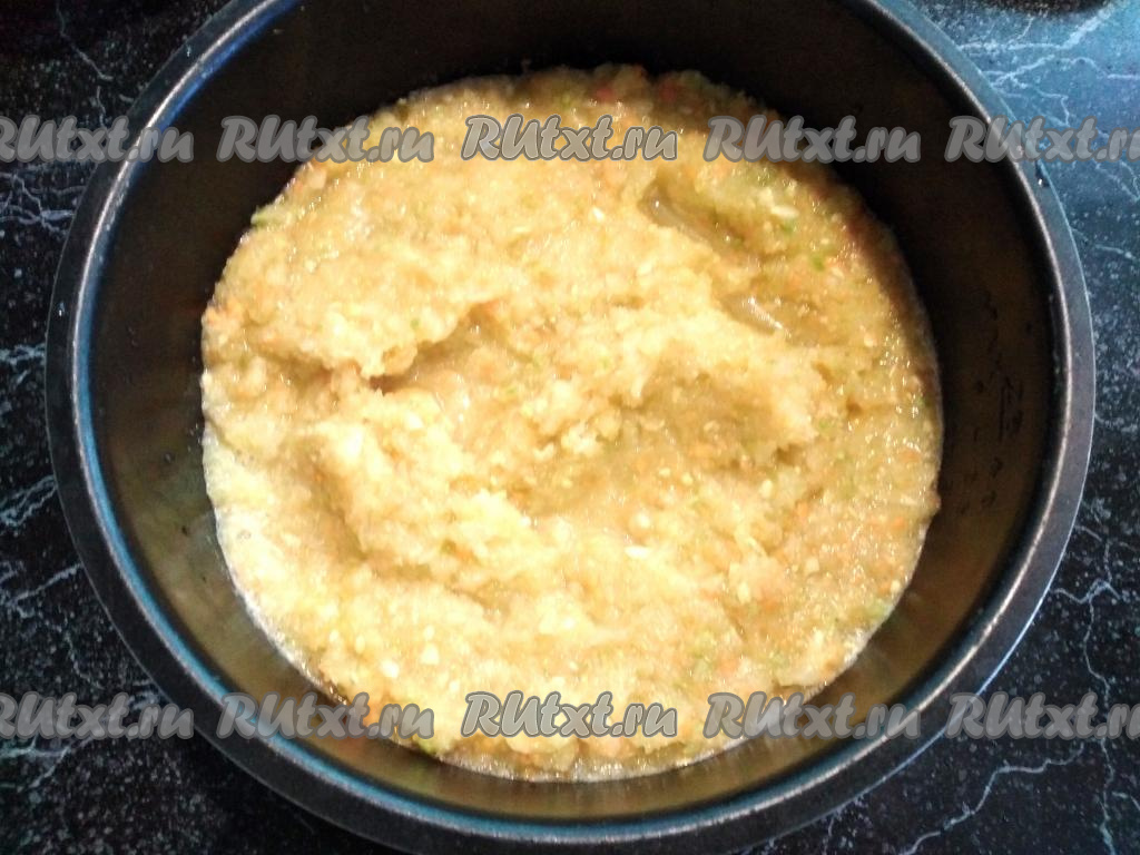 Перекладываем овощную массу в чашу мультиварки (у меня чаша объёмом 5 литров).