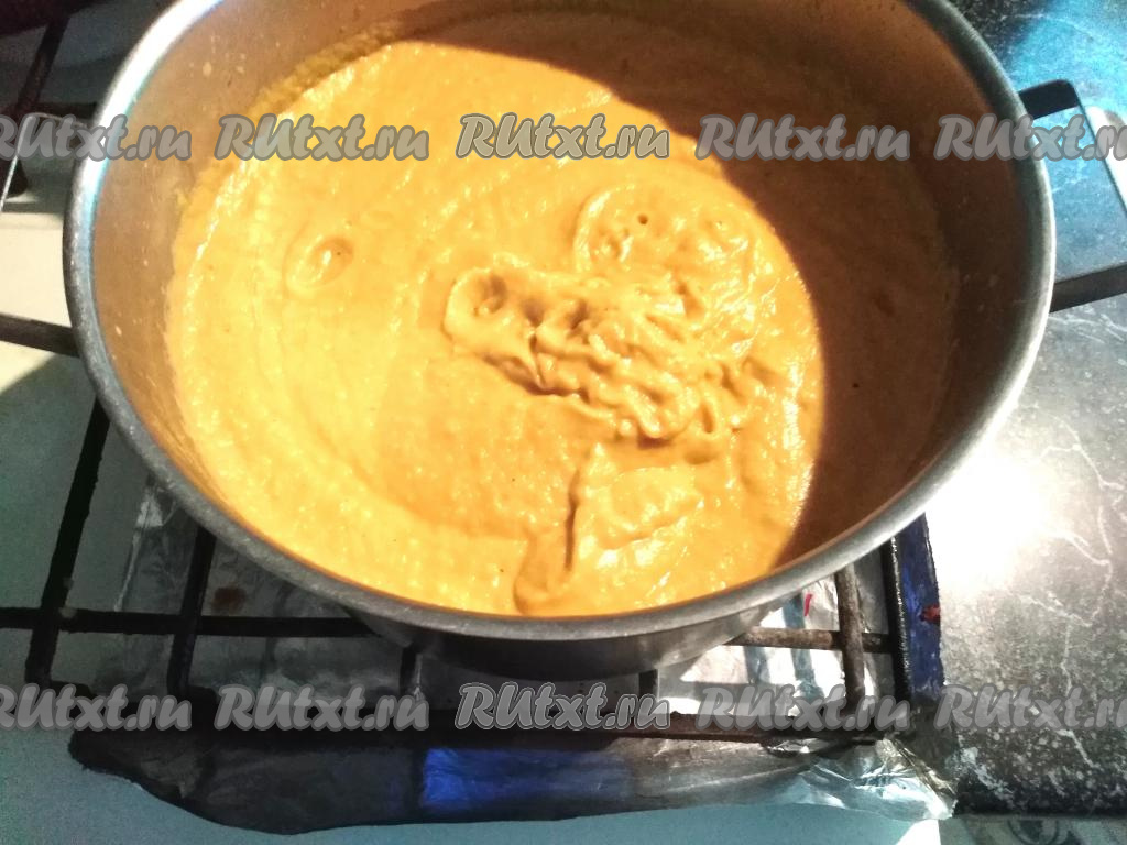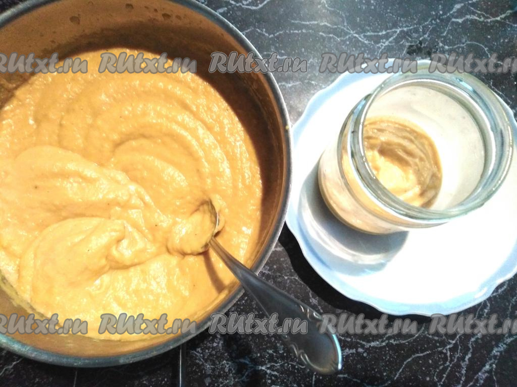 Протушенную кабачковую икру перекладываем в кастрюлю и измельчаем с помощью погружного блендера. Измельчаем основательно, так как от этого будет зависеть вкус нашей икры, чем лучше вы пробьете её блендером, тем нежнее она получится.