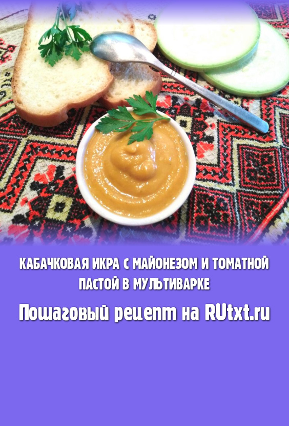 Кабачковая икра, приготовленная с майонезом и томатной пастой в мультиварке, получается нежной, однородной и очень вкусной.