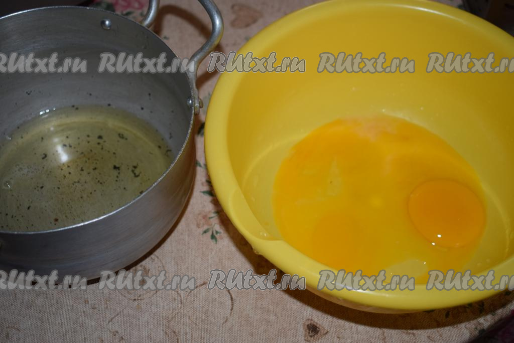 Далее охлаждённое сливочное масло натрём на крупной тёрке и добавим к желтково-сахарной смеси.