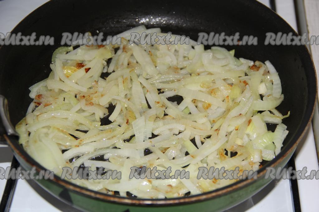 Обжарить лук на среднем огне, помешивая, в течение 5 минут (до золотистого цвета).