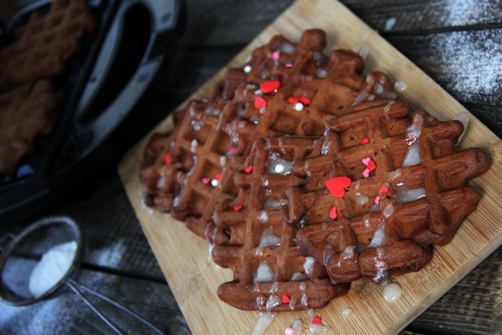 Предлагаю приготовить в электровафельнице очень вкусные, в меру сладкие, мягкие и нежные шоколадные вафли. Рецепт совсем несложный, да и времени на замешивание теста понадобится совсем немного. Поэтому такие вафельки можно достаточно быстро приготовить в вафельнице к воскресному завтраку или в качестве перекуса в выходной день. Очень вкусные шоколадные вафли к столу подаём, полив сгущёнкой или любым сиропом, они отлично сочетаются и со свежими ягодами или фруктами. Из этого количества продуктов получается 8-10 вафель.