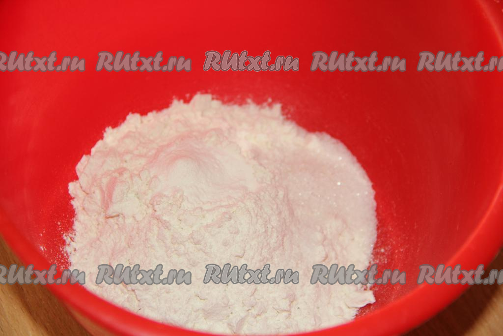 В отдельной миске соединить муку, соль, сахар и разрыхлитель, слегка перемешать.