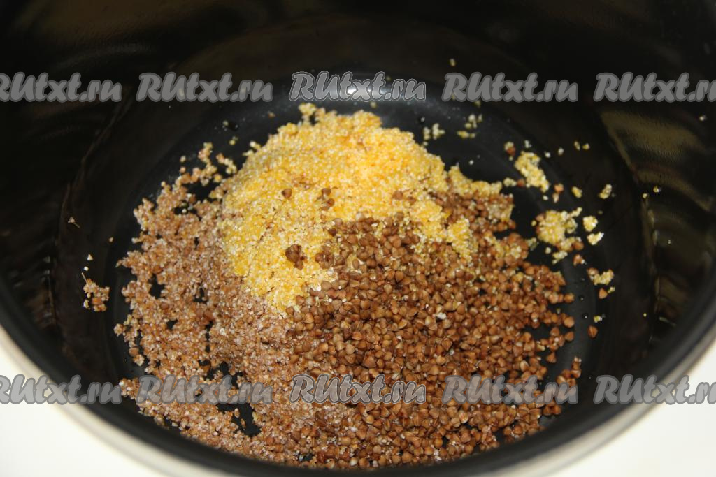 Промытую смесь круп выложить в чашу мультиварки.