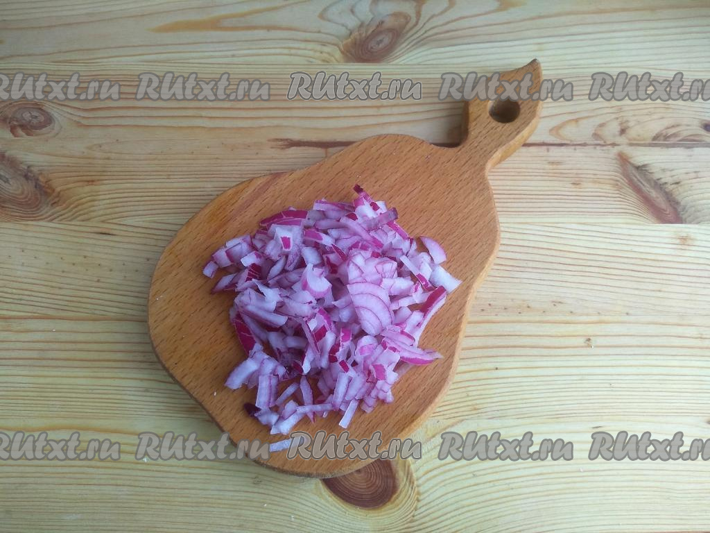 200 грамм тыквы, очищенной от кожуры и семечек, нарезать на кубики с размером стороны длиной 0,7 см.